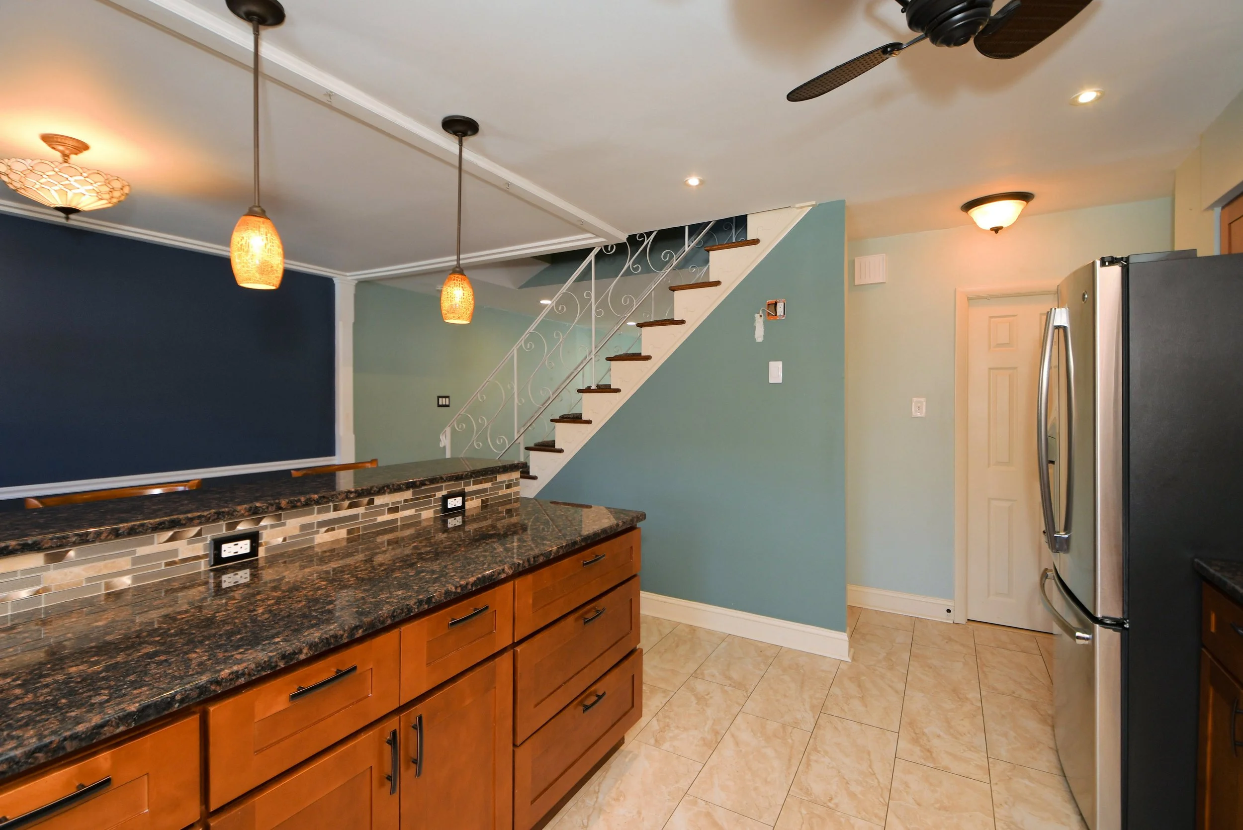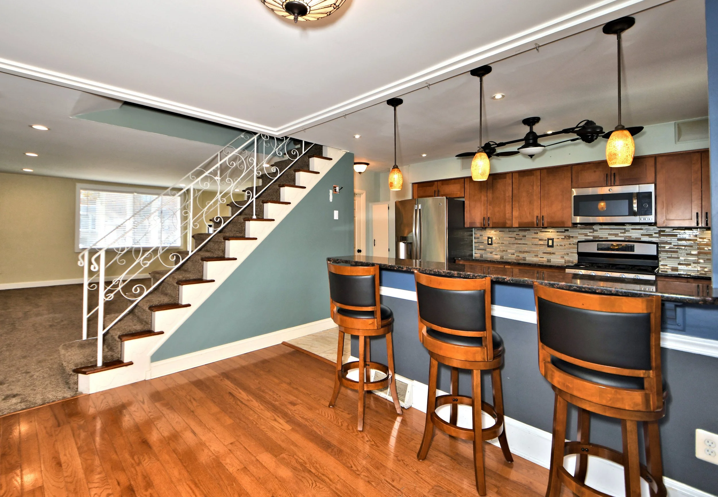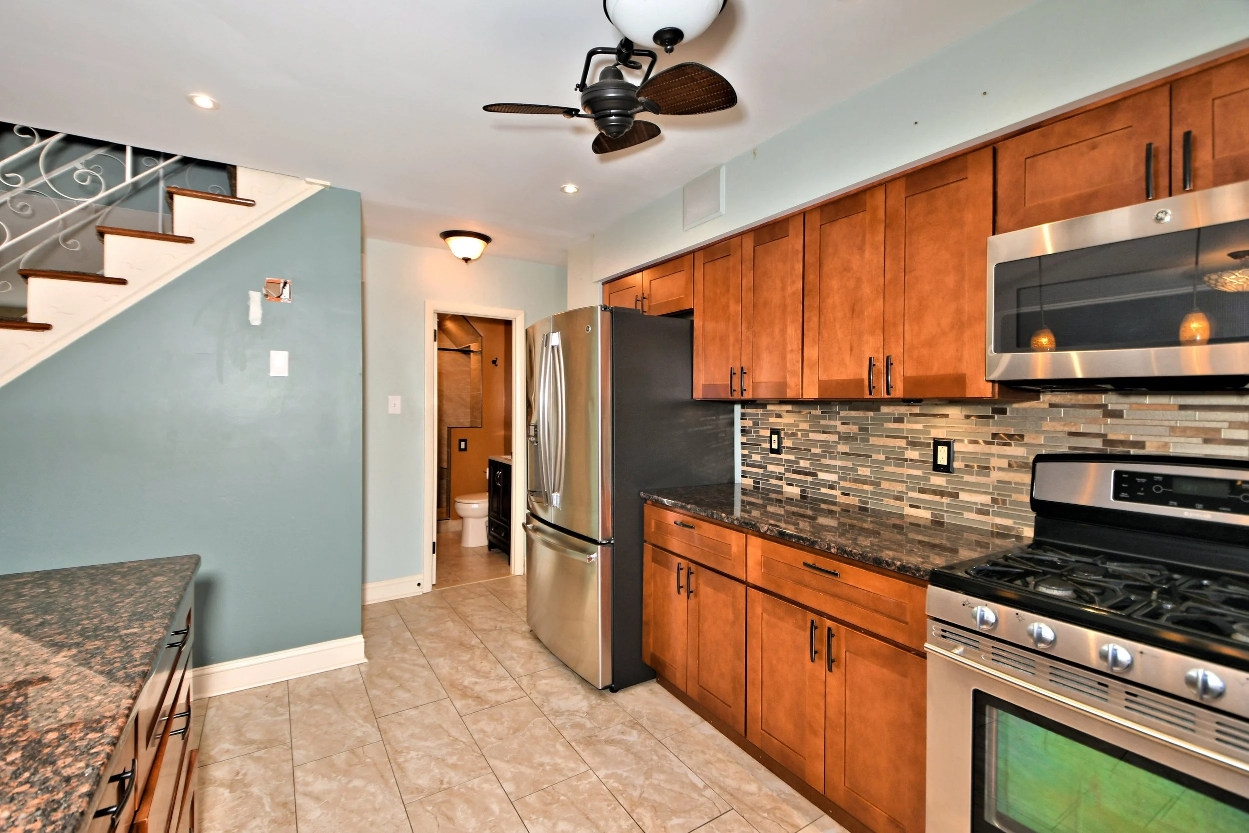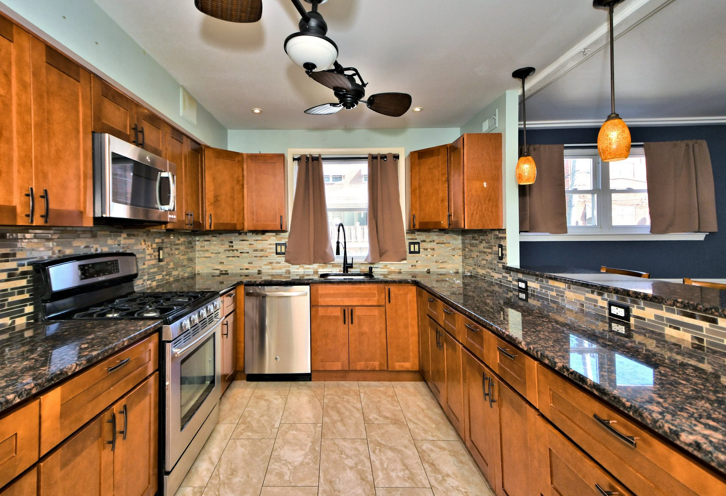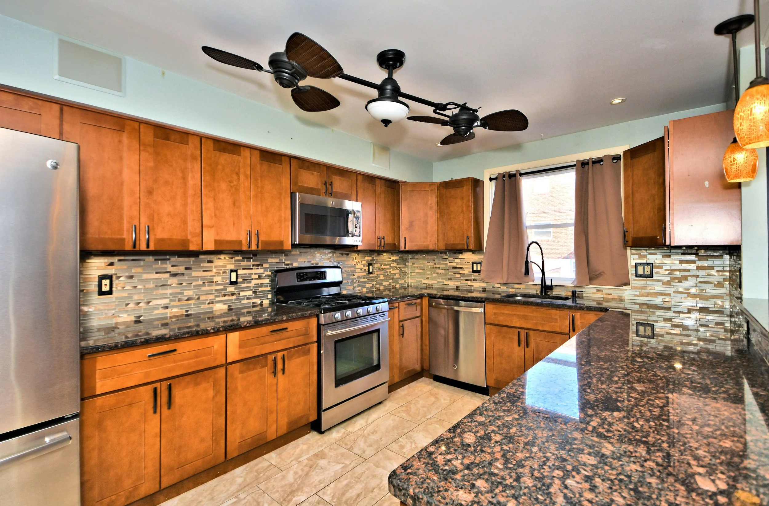 Dishwasher, stainless steel appliances, microwave, fridge