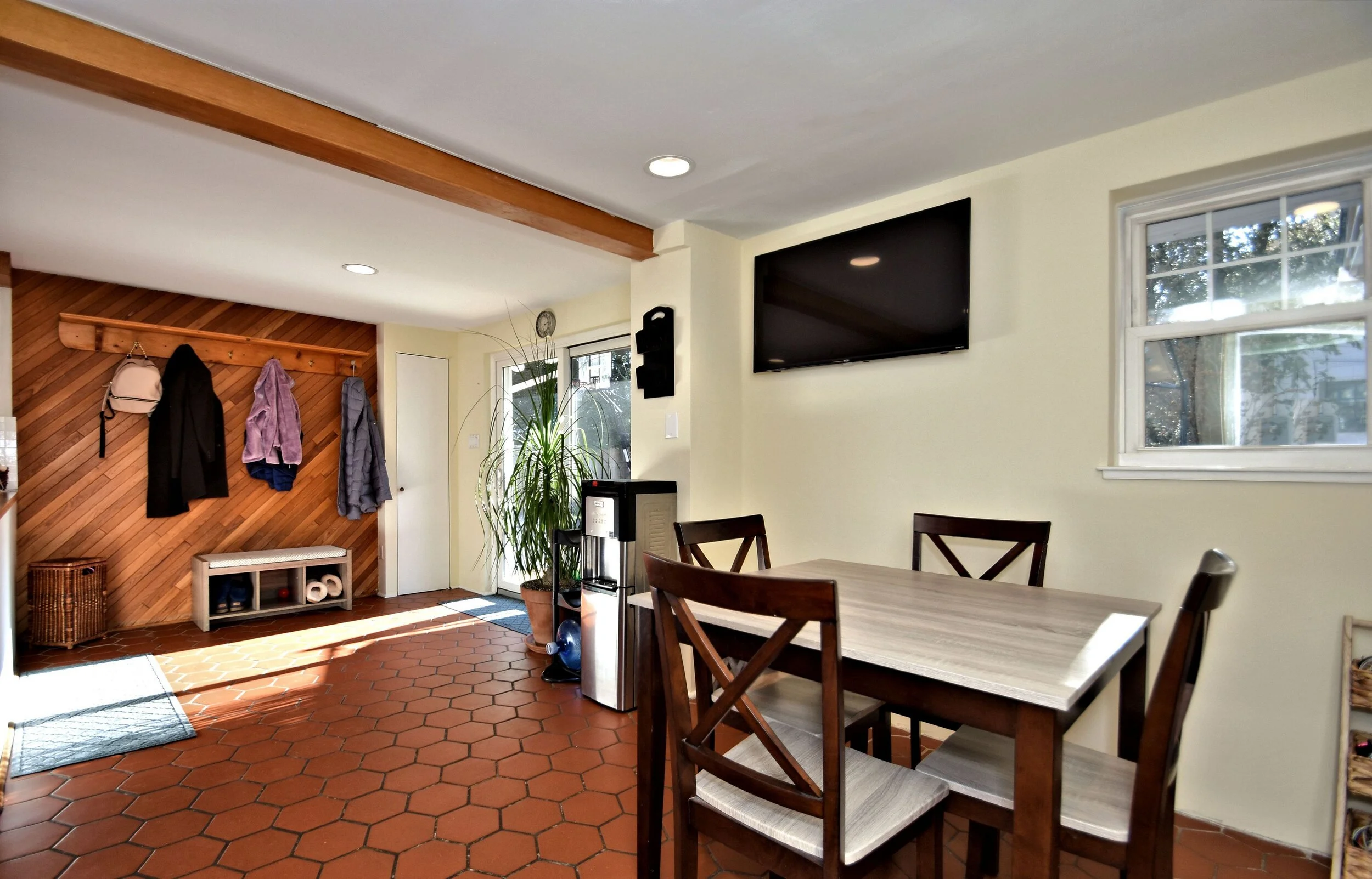 This gorgeous, move-in ready Dutch Colonial on a quiet street in sought-after Elkins Park neighborhood is in walking distance to public transportation and a quick drive to Whole Foods, restaurants, and major routes to Center City. Enjoy the old-world craftsmanship with modern amenities like central air and second floor washer and dryer. Fresh paint inside and out! New roof and new electrical! Control most lights from your smartphone as the Lutron Smart System has recently been installed. Dim any light! Entertain guests in the bright living room with stone fireplace or head to the family room with vaulted ceiling, skylight, original stone wall, and new flooring. The spacious eat-in kitchen has plenty of cabinet and counter space and offers new stainless steel appliances including gas stove range which is perfect for the cook! Patio sliding door leads to the new deck which is ideal for warm weather barbecues or relaxing. Formal dining room has quality plantation shutters and moldings. Updated powder room finishes the first floor. On the second floor, the roomy master bedroom has master bathroom with shower. Two large bedrooms, two hall linen closets, and updated full bathroom with brand new vanity, sink and toilet complete the second floor. Basement is partially finished and offers plenty of storage room. The driveway was recently paved and expanded so you have ample space for parking. There is a new Amish shed for extra storage. This home has been well maintained and cared for. Ask for the complete list of updates and see how this home is priced aggressively or stop by the open house to see why this stunning home should be your next!